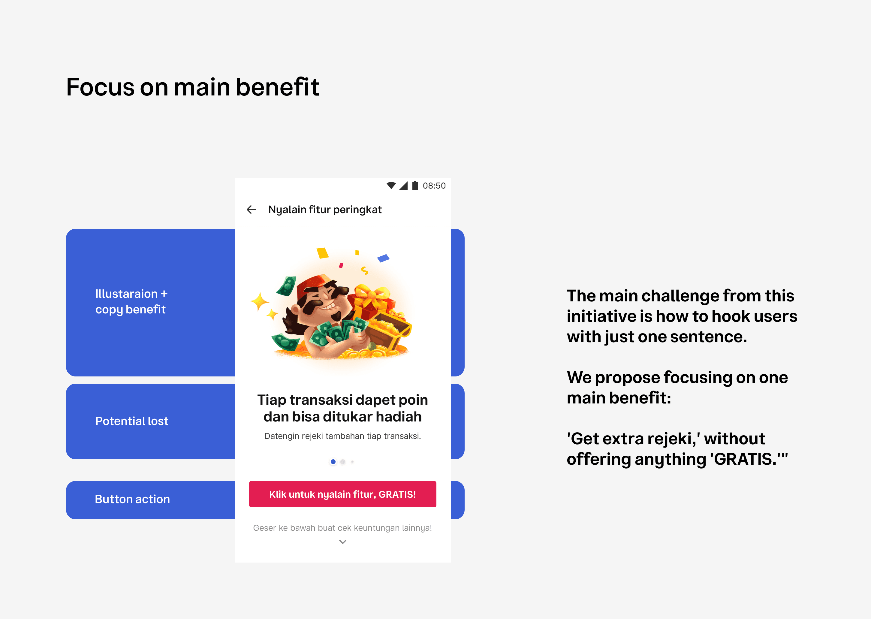 Brainstorming: Conducted effective brainstorming sessions with stakeholders from product, design, business, and engineering teams to identify user disinterest and key benefits.